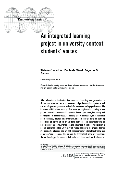 (PDF) An integrated learning project in university context: students ...