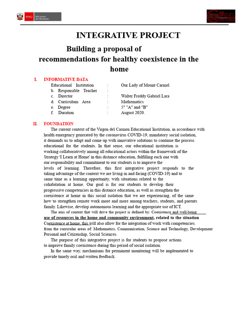 Integrative Learning Project 2020 High School | PDF | Information ...