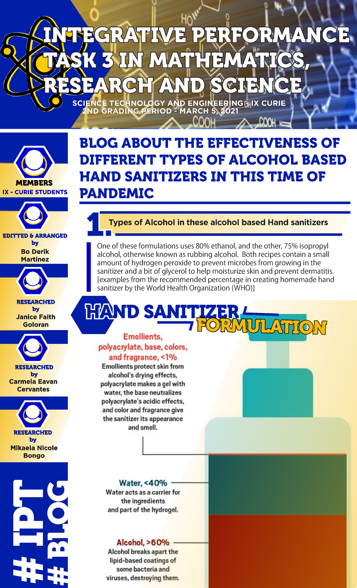Integrative Performance Tasks 1.1 in Math 9 and Advanced Chemistry ...