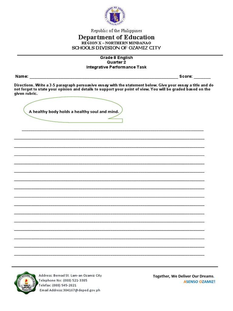 Integrative Performance Task In: Grade 12 (First Quarter) | PDF ...