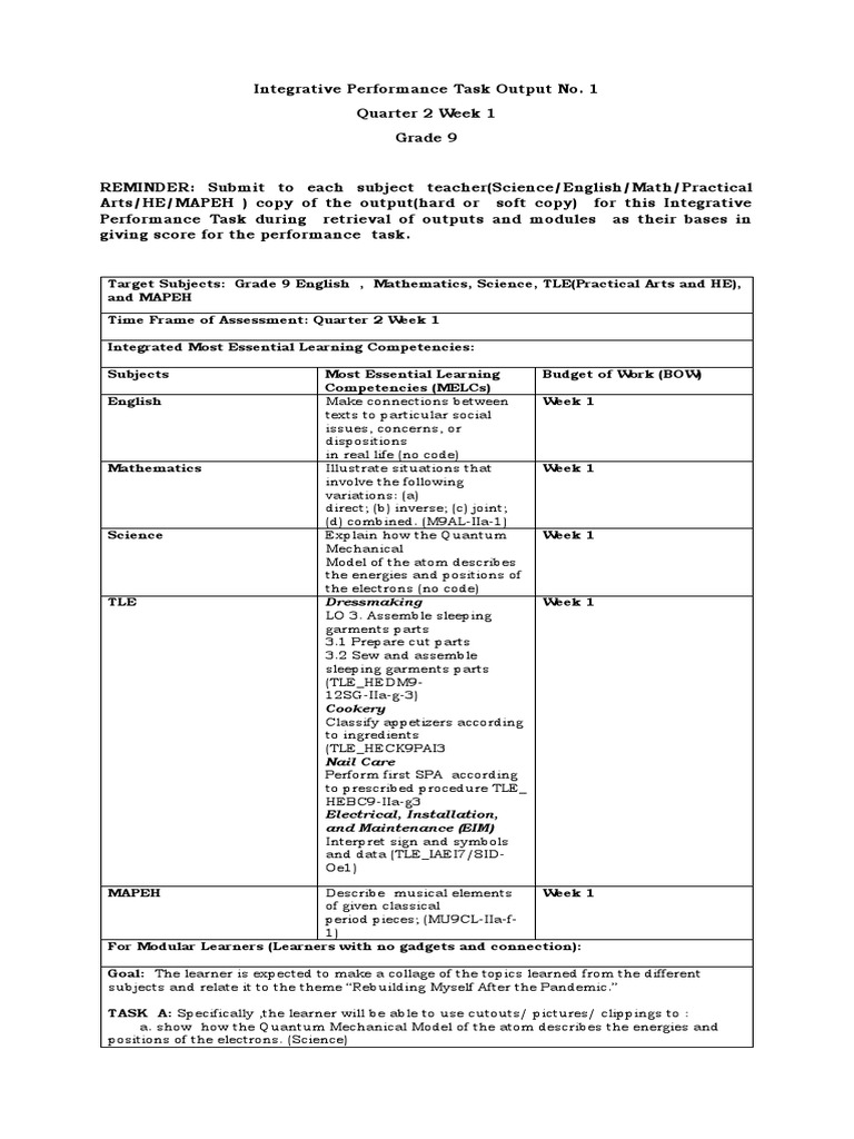 Integrated Performance Task FOR Science, Math and Tle | Download Free ...