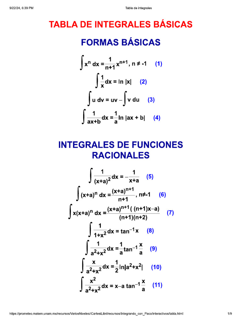 Integral Table | PDF | Teaching Mathematics
