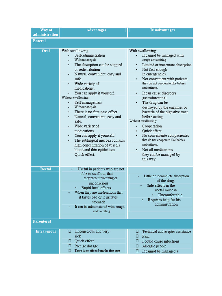 Integrative Table of Advantages and Disadvantages of The Administration ...