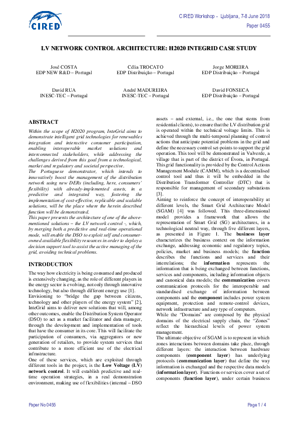 (PDF) LV network control architecture: H2020 InteGrid case study