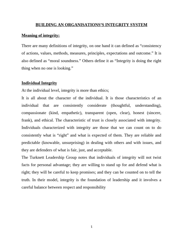 Building An Organisation's Integrity System | PDF | Integrity | Leadership
