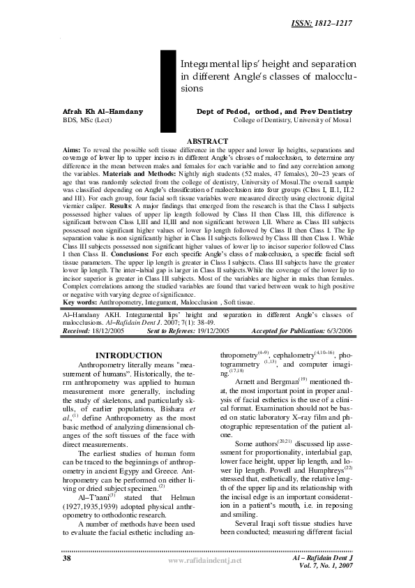 (PDF) Integumental lips’ height and separation in different Angle’s ...