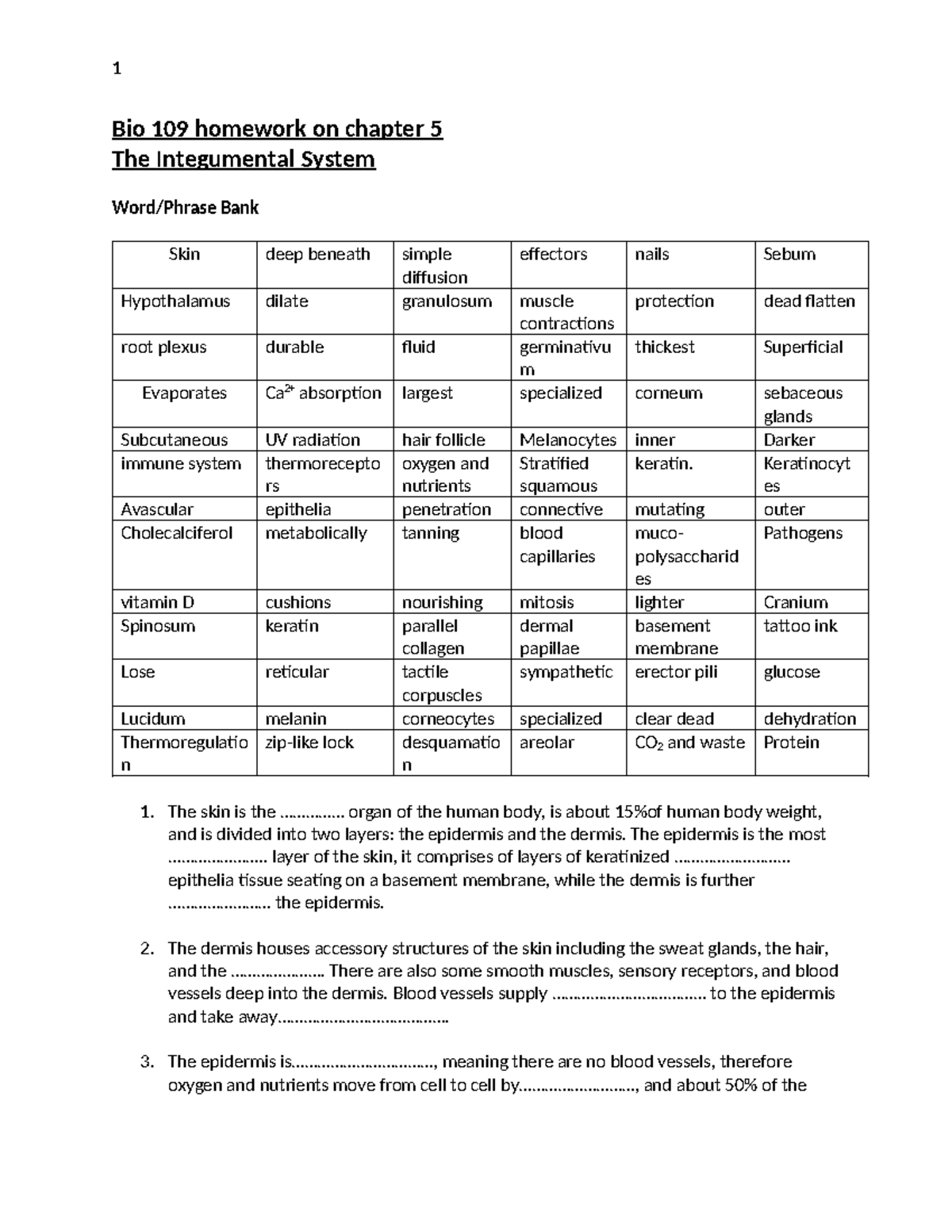 Bio 109 Homework: Chapter 5 - The Integumental System Overview - Studocu