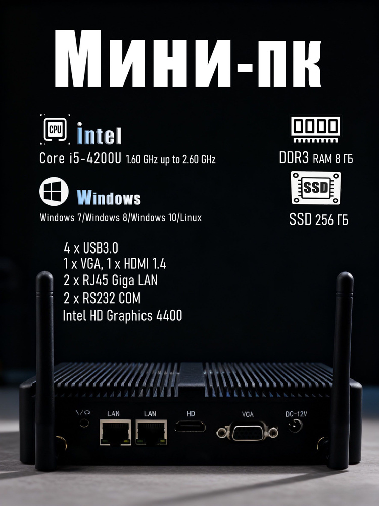 EGLOBAL Мини-ПК (Intel Core i5-4200U, RAM 8 ГБ, SSD 256 ГБ, Intel HD ...