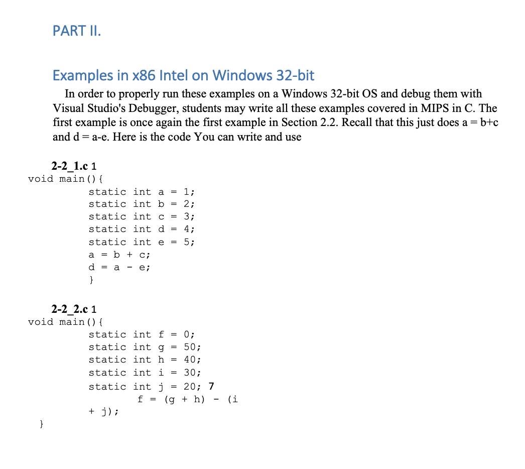 PART II. Examples in x86 Intel on Windows 32-bit In | Chegg.com