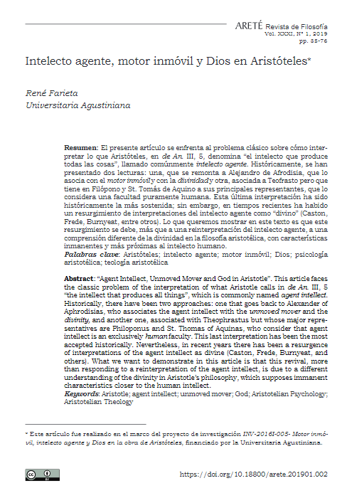 (PDF) Intelecto agente, motor inmóvil y Dios en Aristóteles