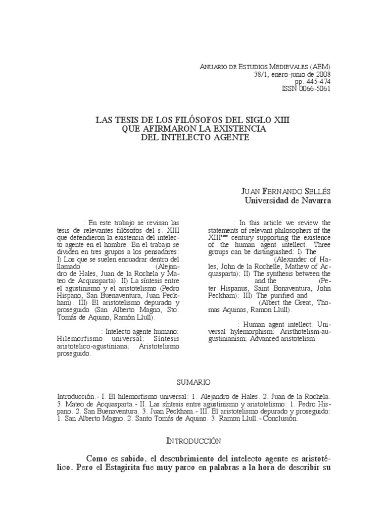 J F Selles El Intelecto Agente y Los Filosofos Ven | PDF | Comprensión ...