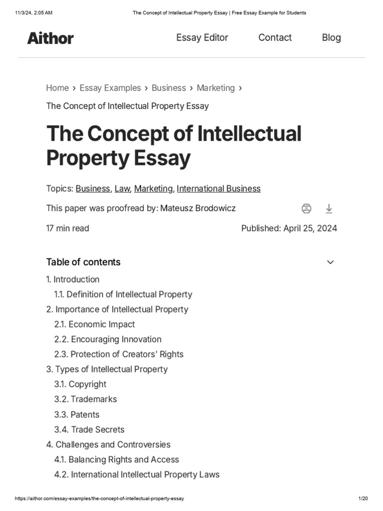 The Concept of Intellectual Property Essay - Free Essay Example For ...
