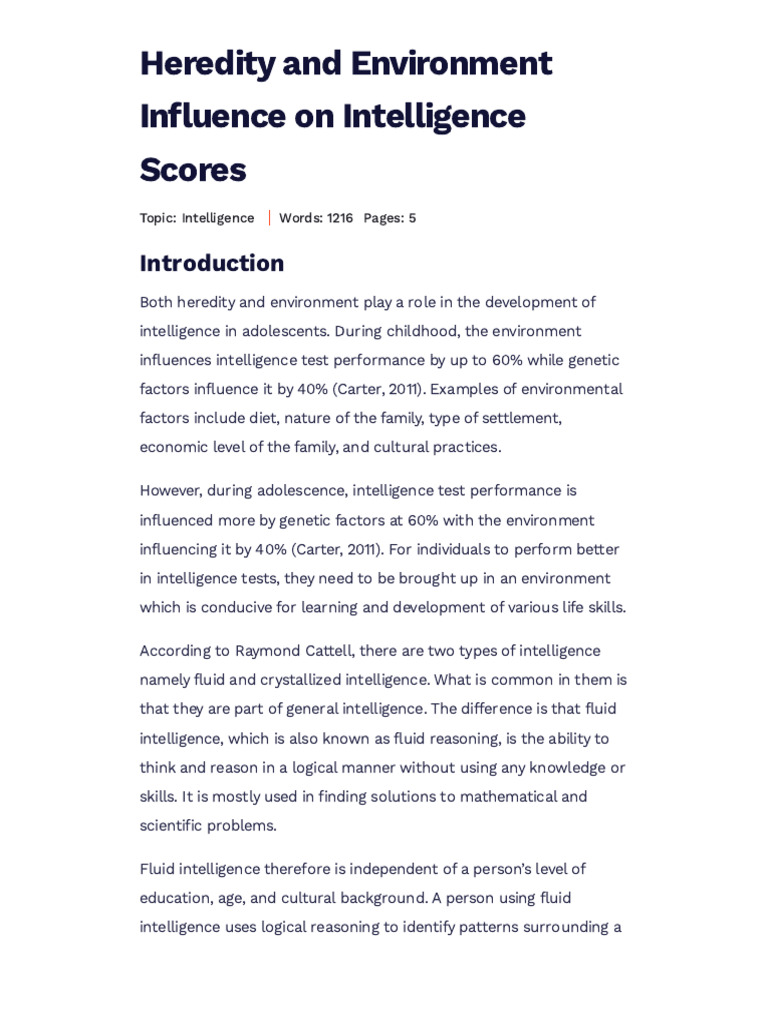 Heredity and Environment Influence On Intelligence Scores - Free Essay ...