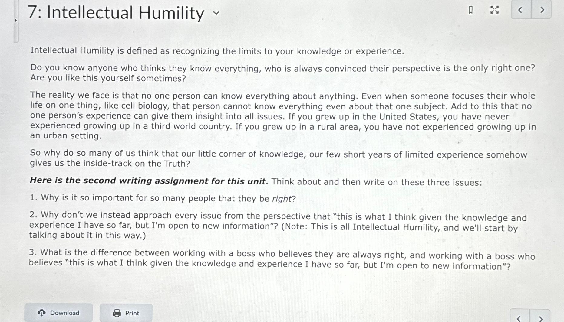 Solved 7: Intellectual HumilityIntellectual Humility is | Chegg.com