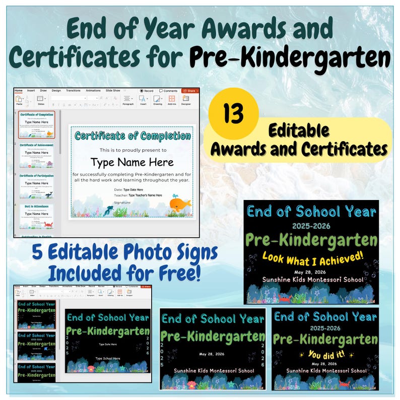 Under the Sea Pre-k Certificates | Editable Graduation Awards | Photo ...