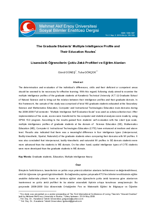 (PDF) The Graduate Students? Multiple Intelligence Profile and Their ...