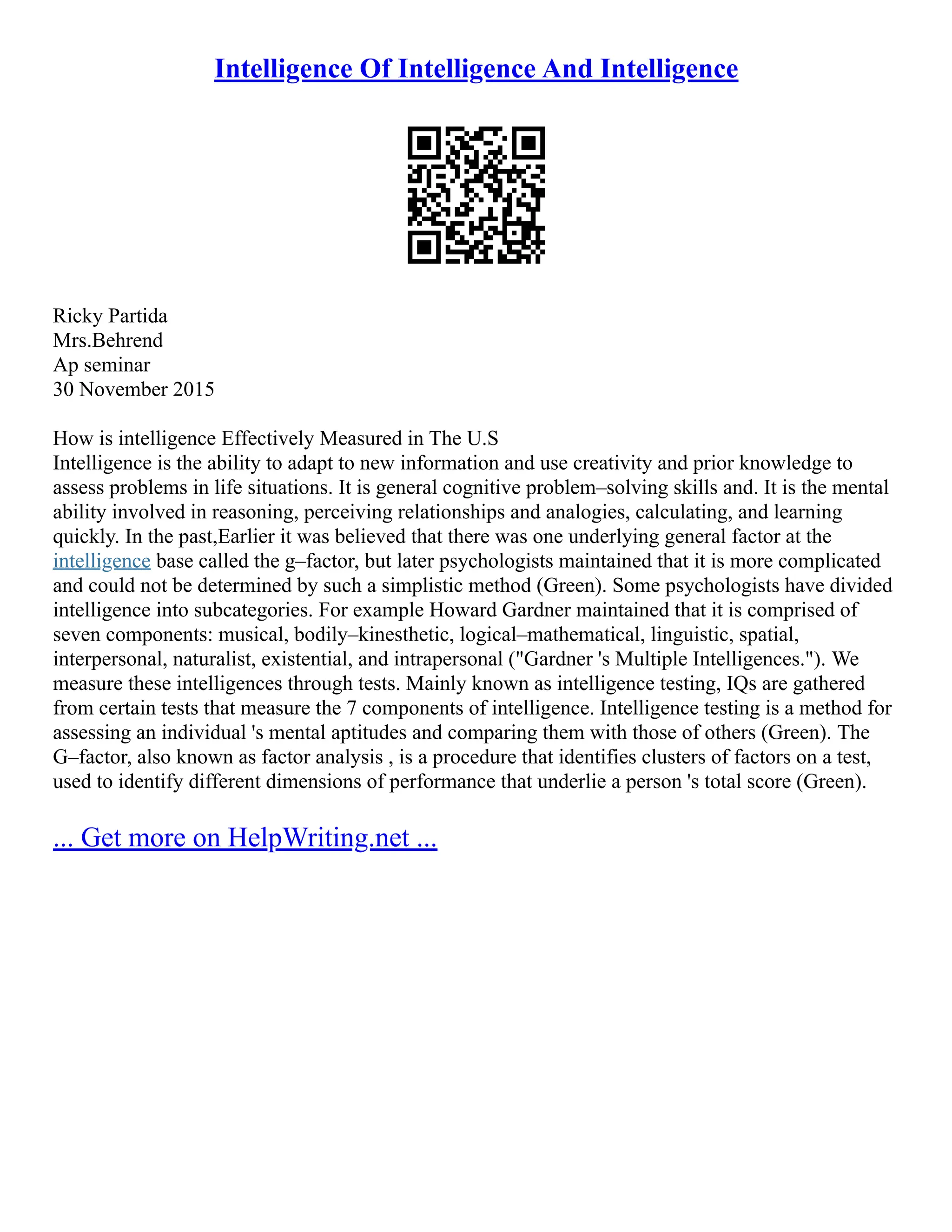 Understanding Intelligence: Insights on IQ, Types, and | Course Hero