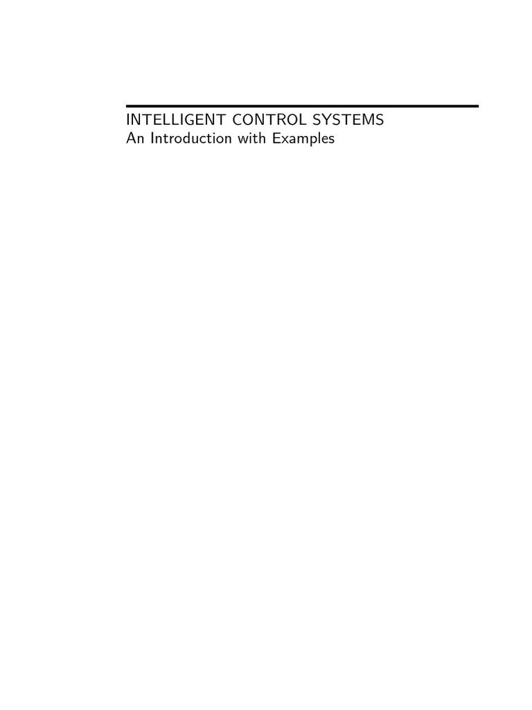 INTELLIGENT CONTROL SYSTEMS An Introduction With Examples | PDF