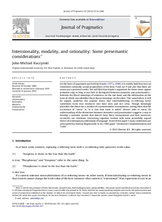 (PDF) Intensionality, modality, and rationality: Some presemantic ...