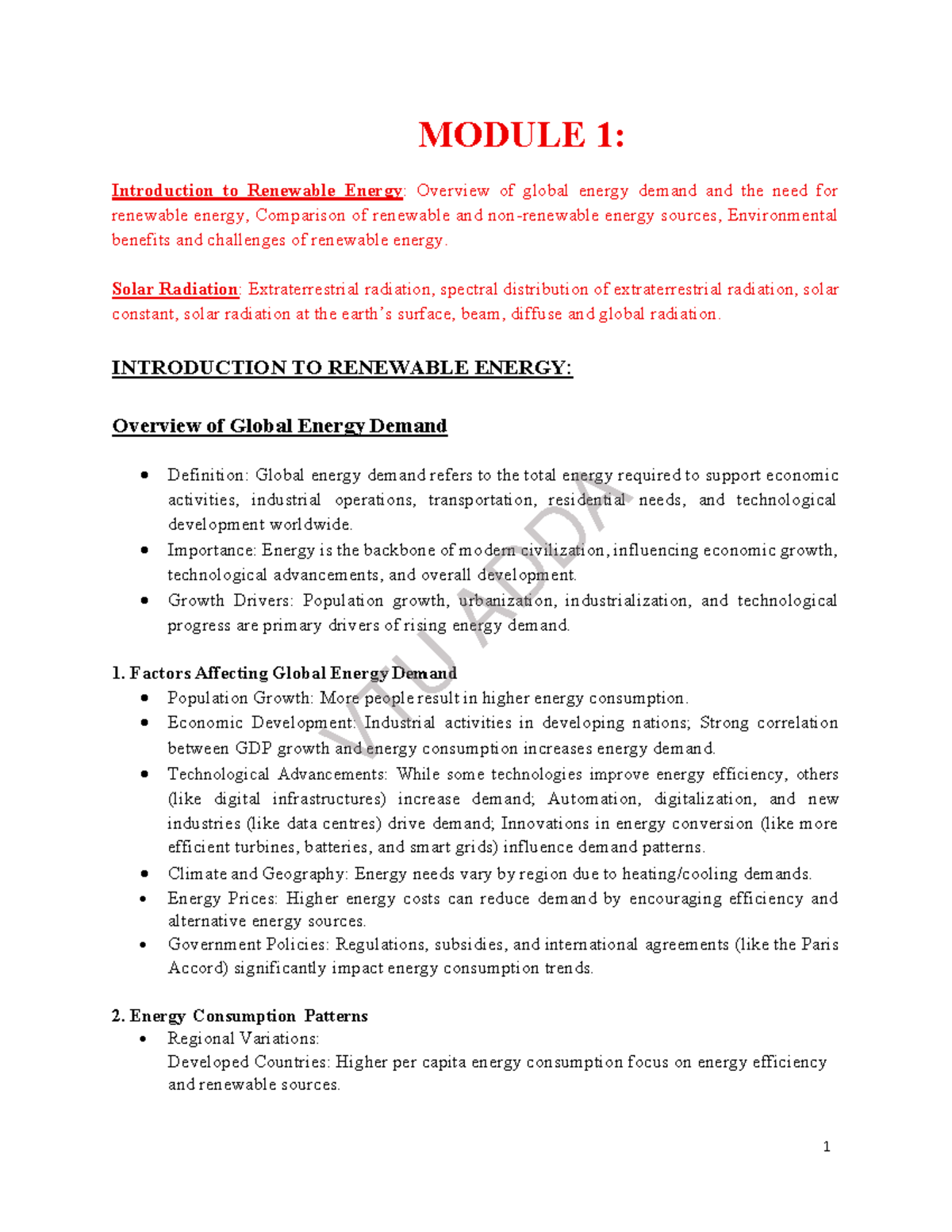 BME654B: Module 1 - Introduction to Renewable Energy and Solar ...