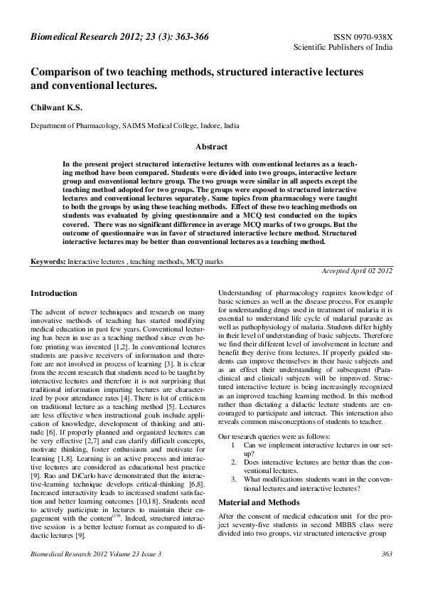 (PDF) Comparison of two teaching methods, structured interactive ...