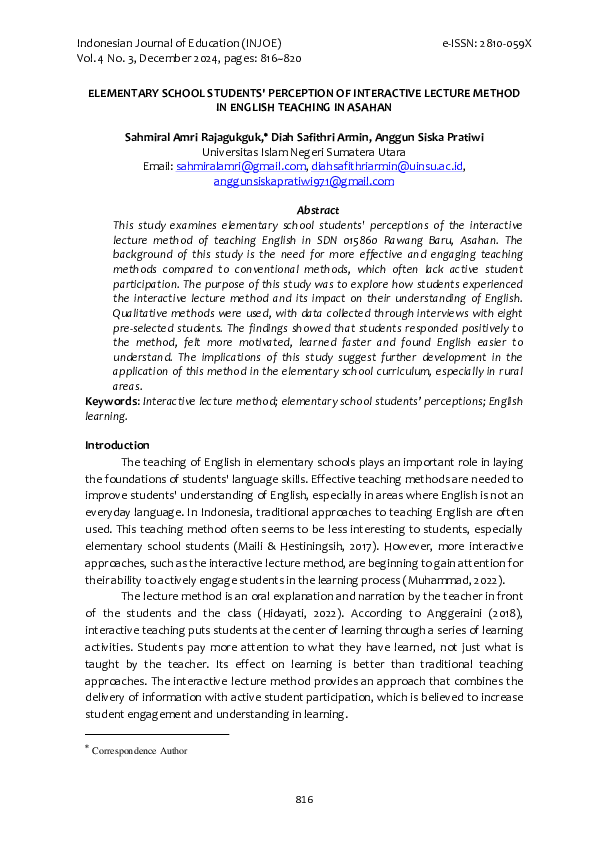 (PDF) ELEMENTARY SCHOOL STUDENTS' PERCEPTION OF INTERACTIVE LECTURE ...