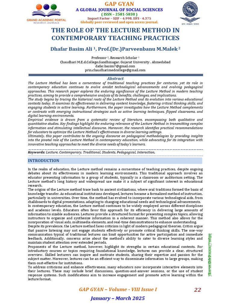 (22-27) The Role of The Lecture Method in Contemporary Teaching ...