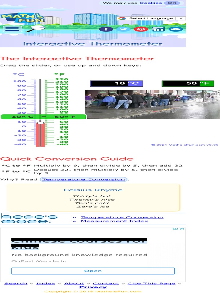 Math Is Fun: Interactive Thermometer Interactive for 3rd - 8th Grade ...