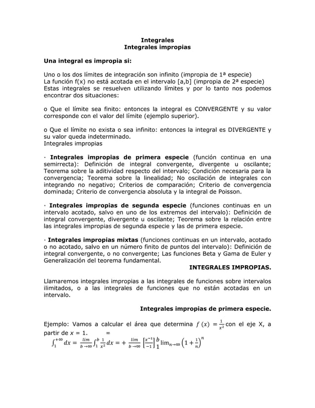 Integrales Impropias: Guía Básica | PDF | Integral | Límite (Matemáticas)