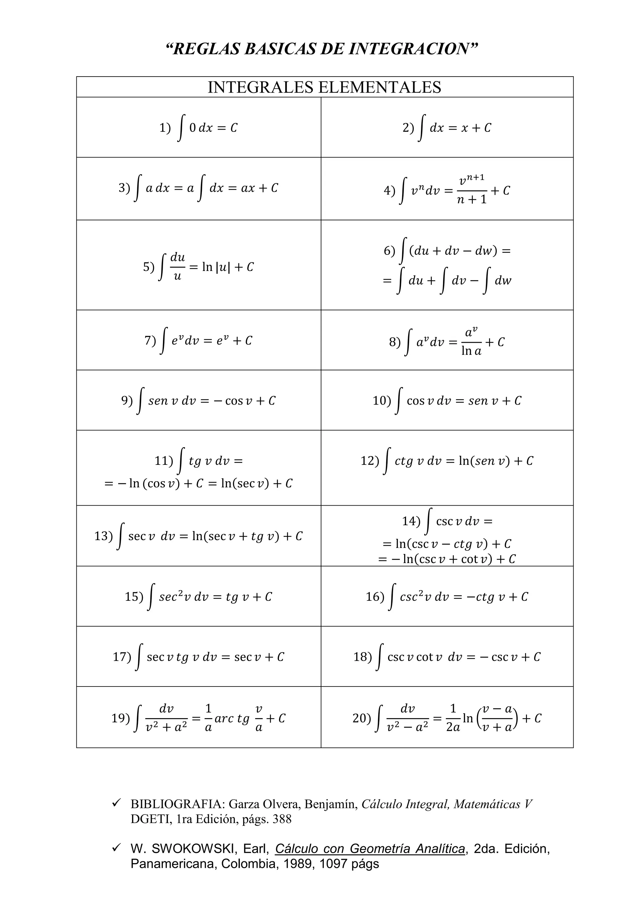 Lista de Integrales directas | Estrategias para enseñar matematicas ...