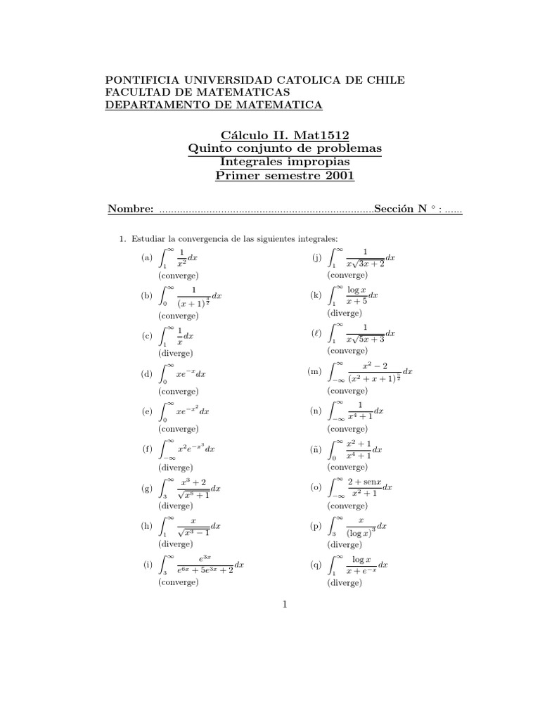 Integrales Impropias e Integrales Dependientes de Un Parametro | PDF ...