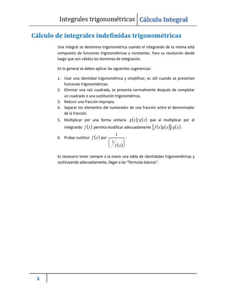 Integrales Trigonométricas | PDF | Integral | Funciones trigonométricas