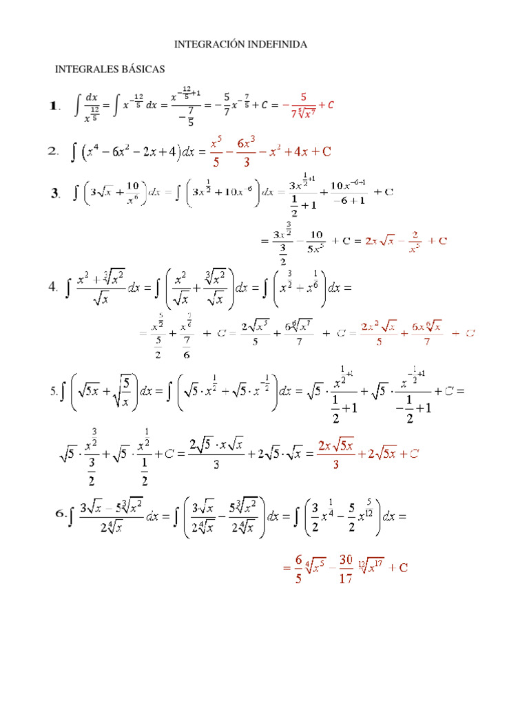 Ejercicios de Integrales Indefinidas | PDF | Integral | Matemáticas