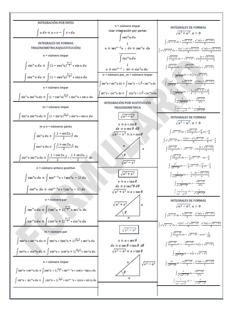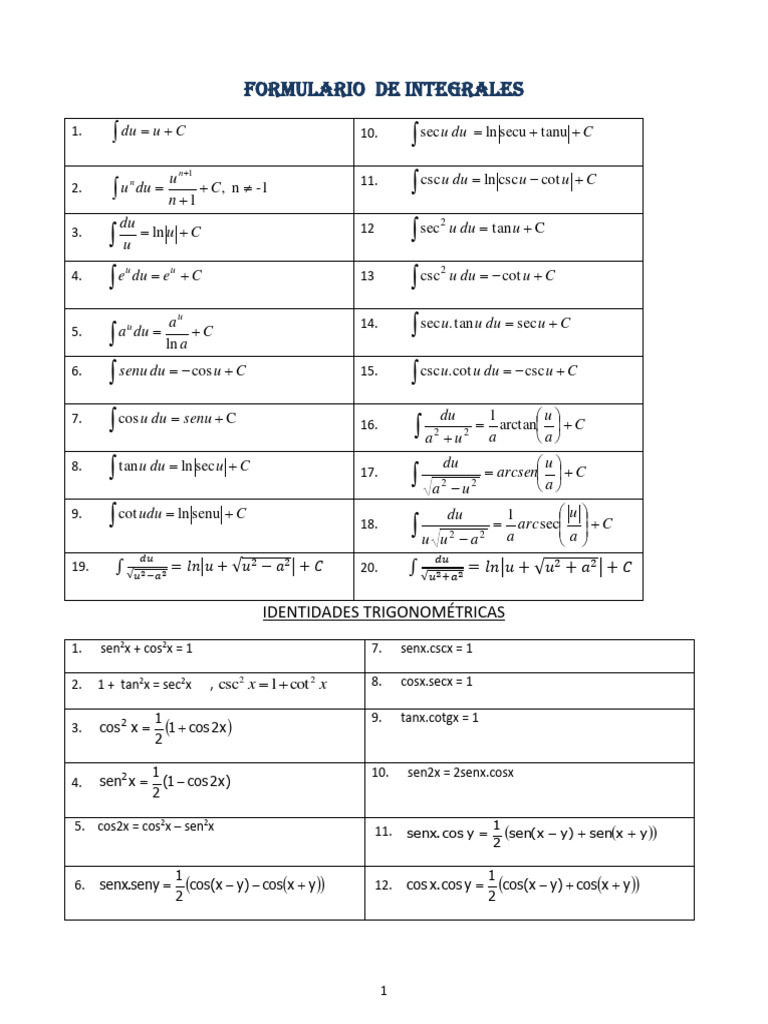 Formulario Integrales 1.2 | PDF | Matemáticas | Métodos y materiales de ...