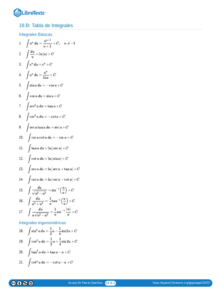 Calculo Tabla de Integrales | PDF | Integral | Conceptos matemáticos