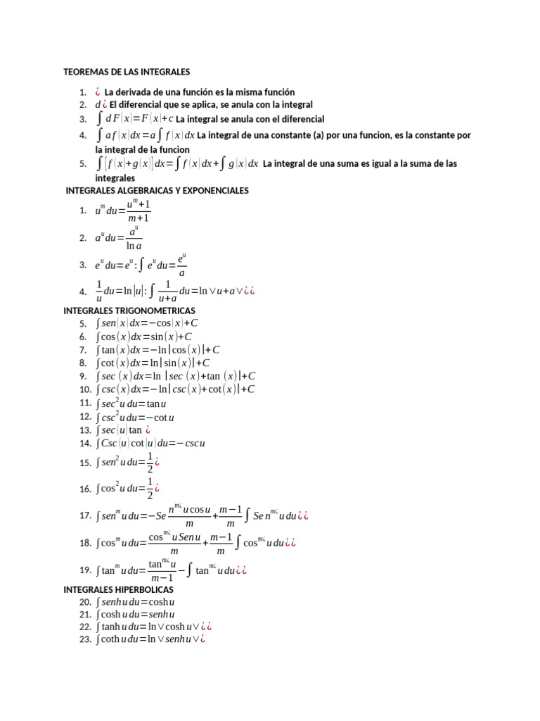 Formulas Integrales | PDF | Integral | Funciones y mapeos