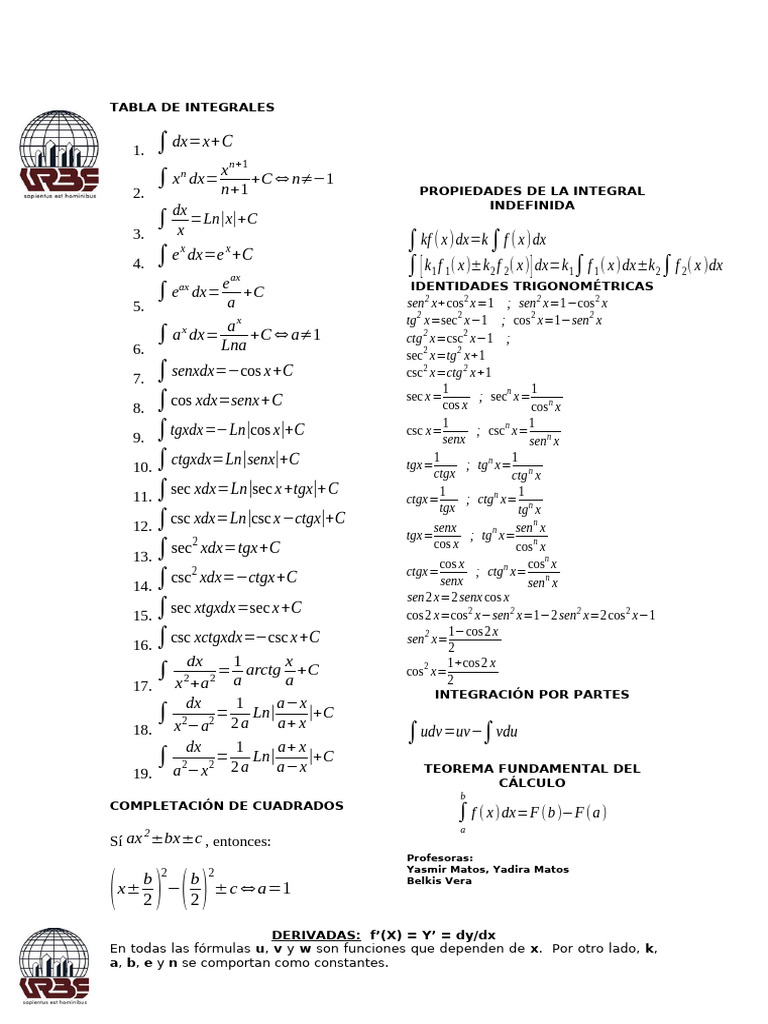 Tabla De Derivadas E Integrales Doc Kulturaupice/tabela De Derivadas