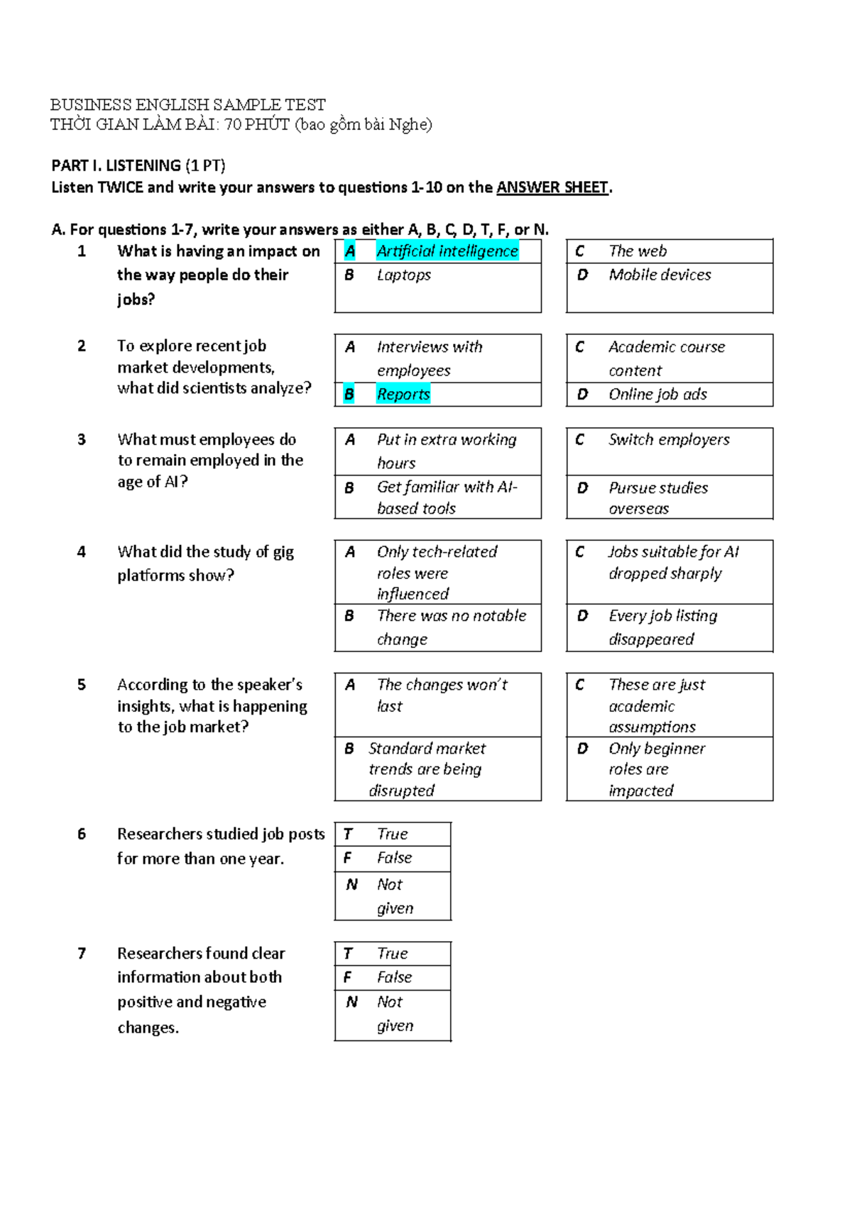 Business English Sample Test: Listening & Vocabulary Exam - Studocu