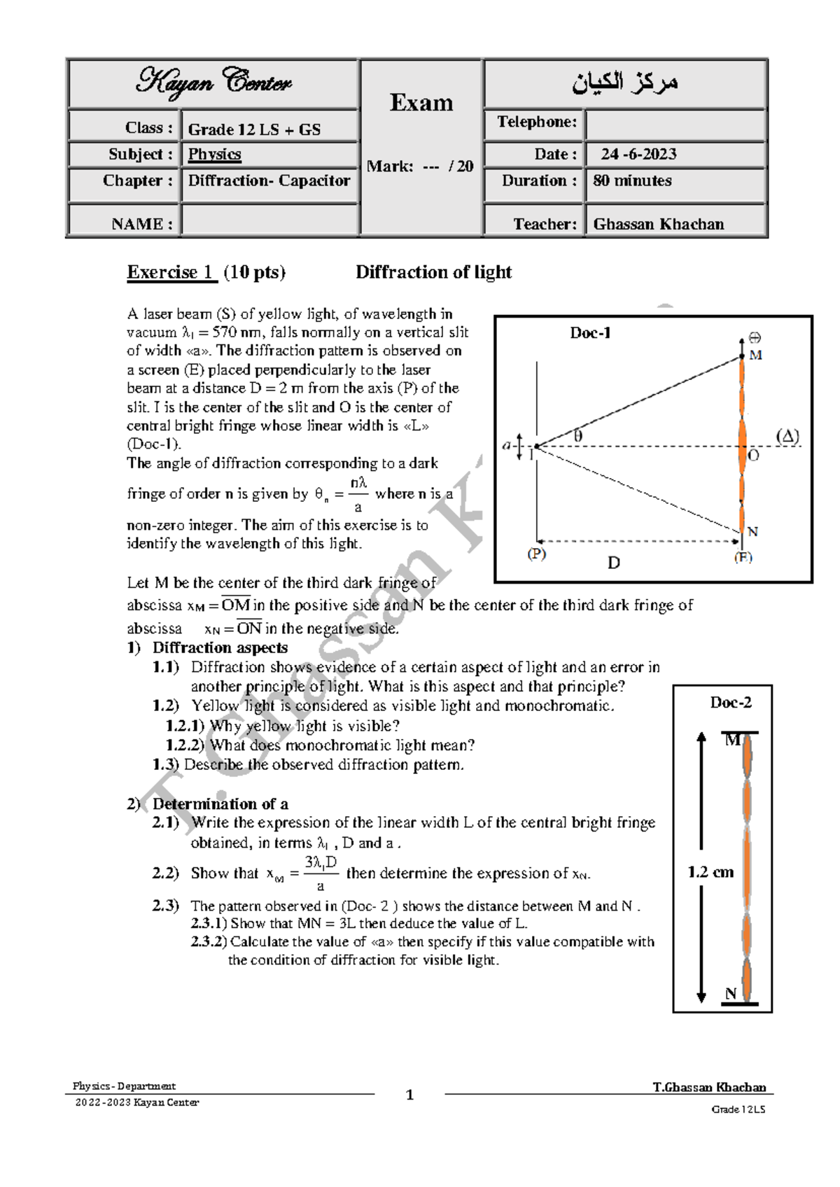 Sample Test 1 - Physics LS: Capacitors & Diffraction Concepts - Studocu