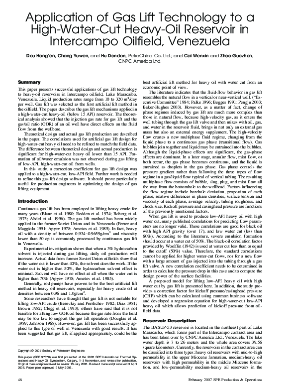 (PDF) Application of Gas Lift Technology to a High-Water-Cut Heavy-Oil ...