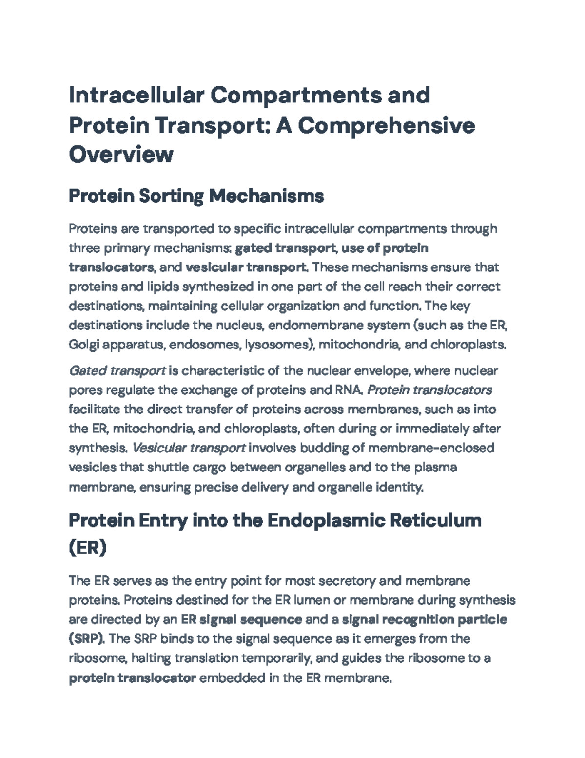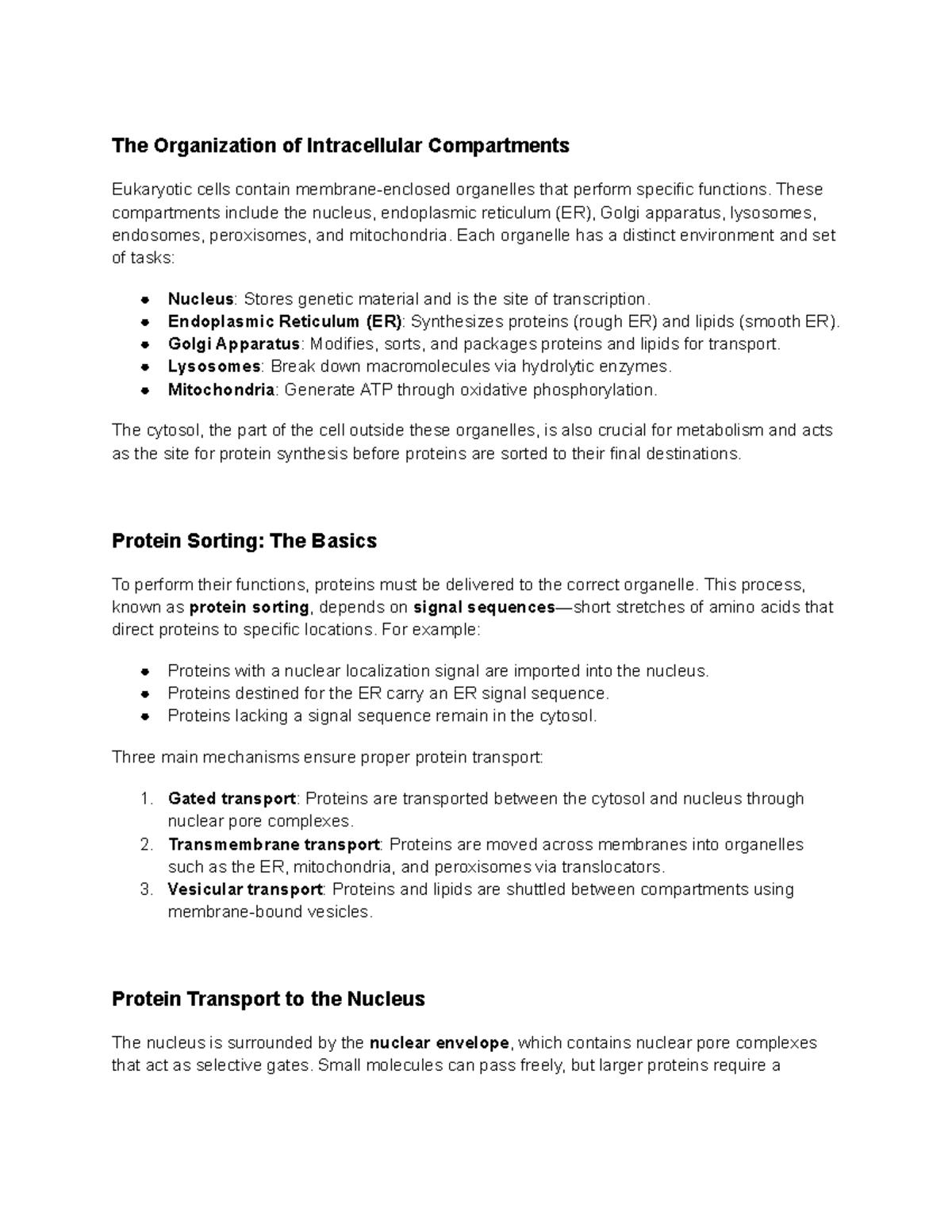 Intracellular Compartments & Protein Transport Lecture