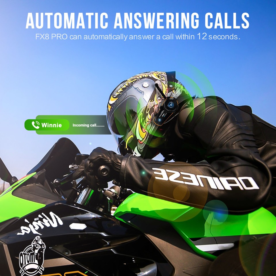 FX8 Pro Motorcycle Helmet Intercom Bluetooth Headset 10 Riders 2KM ...
