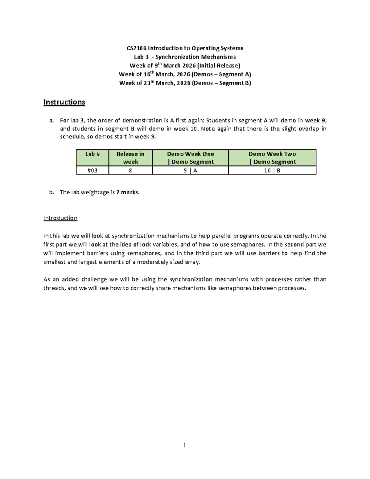 CS2106 Lab 3: Synchronization Mechanisms and Demos Schedule - Studocu