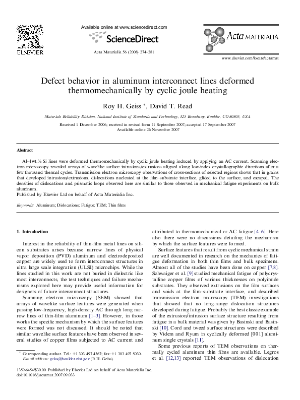 (PDF) Defect behavior in aluminum interconnect lines deformed ...
