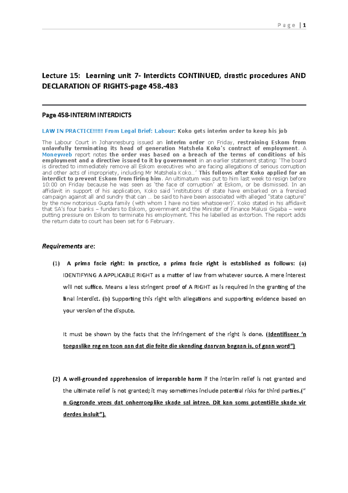 Lecture 15 - Lecture 15: Learning unit 7- Interdicts CONTINUED, drastic ...