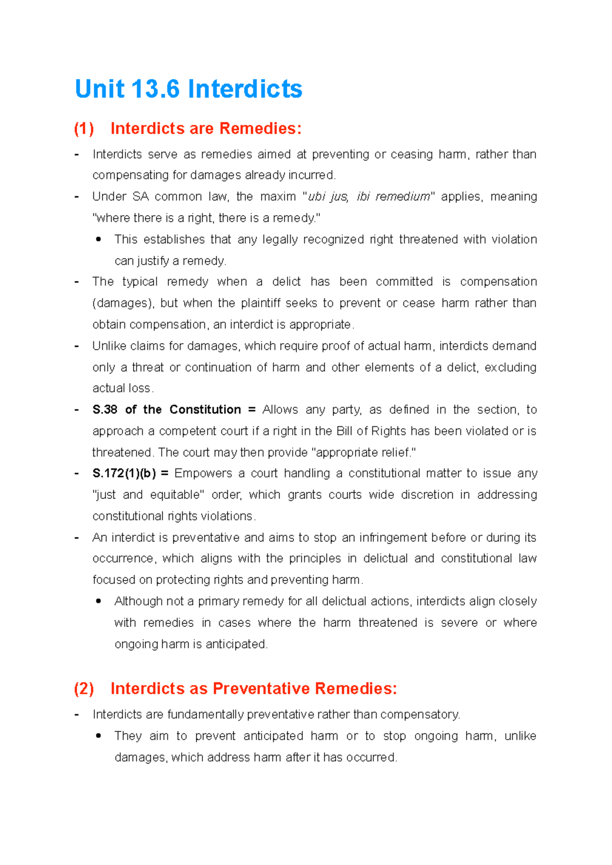 Understanding Interdicts and Common Law Damages: A Guide to | Course Hero