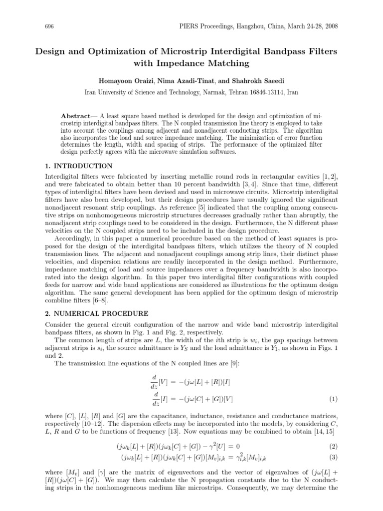 Design and Optimization of Microstrip Interdigital Bandpass Filters ...
