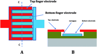 Schematic structure of a sensor with interdigitated electrodes. Left ...