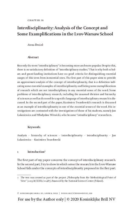 (PDF) Interdisciplinarity: Analysis of the Concept and Some ...