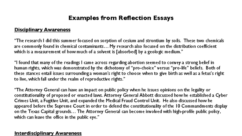 Interdisciplinary Reflection Essay Examples: Cesium, Strontium & Social ...